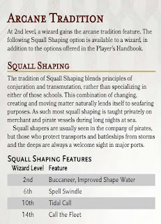 I really liked the flavor of this wizard tradition, and it should fit in just fine with the upcoming Saltmarsh book. You can do cool things like summon sea creatures and use an improved "shape water" cantrip. Also makes fun suggestions, like having a parrot or monkey familiar.