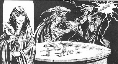 As you might be aware, I am running the Temple of Elemental Evil using the 81' B/X rules. It is going swimmingly. One thing that I must admit I like quite a bit about old editions that is missing from the 4e game is that the PCs encounter spellcasters that use the same spell lists and character creation rules as PCs. Now don't get me wrong; in most cases I much prefer to just build every NPC off of a monster template. 4e character creation is just a little too complicated for building NPCs from actual character classes, especially since they are usually going to get killed pretty quickly. You will spend more time building it than it will ever see on the battlemat. But what if you want that classic edition feel, where evil spellcasters, such as the ToEE's Lareth the Beautiful, have a juicy list of spells? I also love having classic edition spellcaster adversaries cast some spells in advance, like Guards and Wards, or Mordenkainen's Faithful Hound, etc. This way the "table is set" prior to an encounter. How can we get this feel in 4e without wasting a ton of time working through a grueling character creation process?